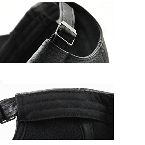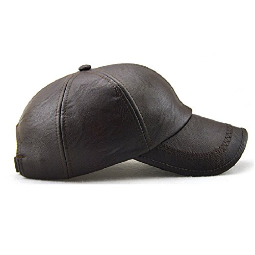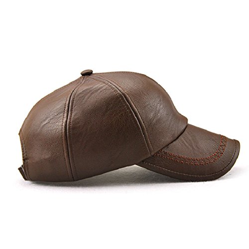 -. Feature : Made of smooth vegan faux leather, adds a stylishly cool vibe to a sporty topper / One size fits most, circumference about 56-60 cm (22.05-23.62 in), with adjustable strap back. / Whether it's for a casual wear or a formal occasion, this awesome leather hat will compliment any color and any type of outfit you decide to wear for the day. Great fit for men and women. / High quality 6 panel baseball cap, suit for autumn and winter. / Clean with cotton wipes or dry wipes.