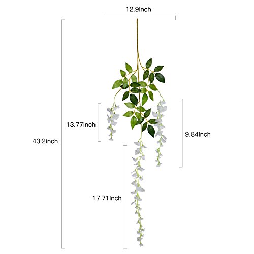Natural-looking flower,wisteria flowers well made and vibrantly colored,green leaves contrast against the white vines and flowery strands and are made of good quality artificial plastic.vivid realistic and lifelike.