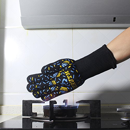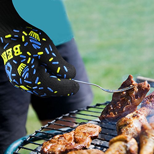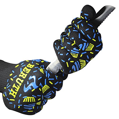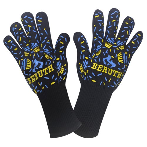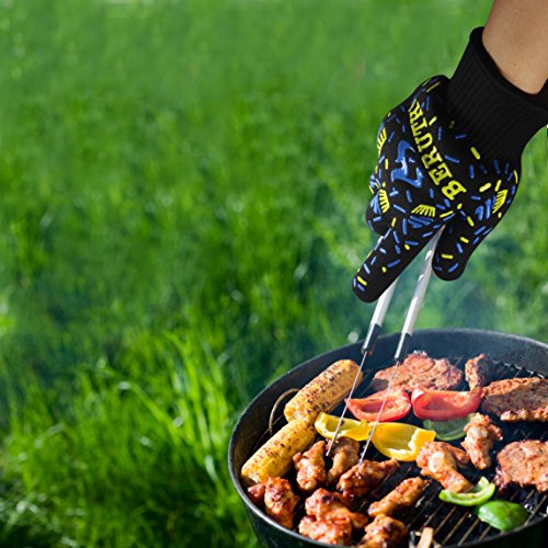 Beruth 662°F Extreme Heat Resistant BBQ Gloves - Lining Cotton - Christmas Gift - For Cooking Baking Grilling - 1 Pair(Large Size)