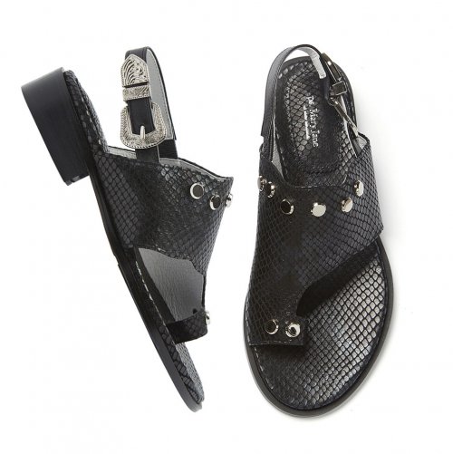 리쟈드 가죽과 스터드, 엔티크 스타일의 버클을 매치한 락시크스타일의 샌들.