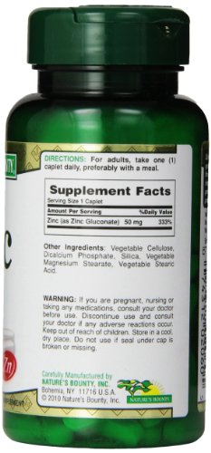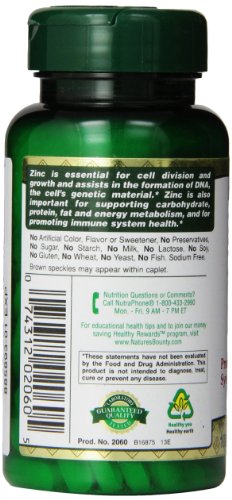 -. Binding : Health and Beauty -. Brand : Nature's Bounty -. Feature : Essential for cell division and growth and assists in the formation of DNA / Important for supporting carbohydrate, protein, fat and energy metabolism / Helps promote immune function -. Label : Nature's Bounty -. Manufacturer : Nature's Bounty -. MPN : 2060 -. PartNumber : 2060 -. ProductGroup : Health and Beauty -. ProductTypeName : HEALTH_PERSONAL_CARE -. Publisher : Nature's Bounty -. Studio : Nature's Bounty -. Title : Nature's Bounty Natures Bounty Chelated Zinc