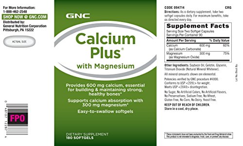 -. Feature : Provides 600 Mg Calcium, Essential For Building & Maintaining Strong Healthy Bones Supports Calcium Absorption With 300 Mg Magnesium Easy-To-Swallow Softgels