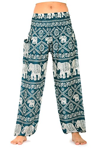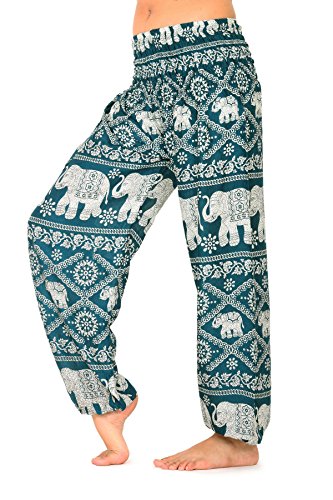 -. Title : Bangkokpants Women's Comfy Pants Elephant Design Green Turquoise US Size 0-12