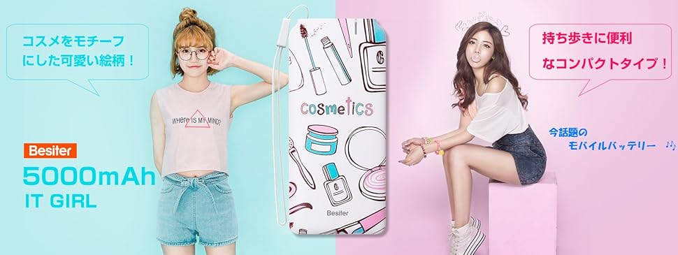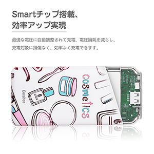 お洒落な女子の為のデザインした、今話題の5000mAh軽量モバイルバッテリーBST-0153N、かわいいコスメをモチーフにした絵柄で、スタイリッシュで美しい曲線的な要素を加え、バッテリーなのに芸術品のアート的な演出ができました。