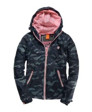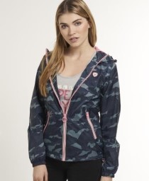 Superdry Zip Through Cagoule in blue camo/metallic pink