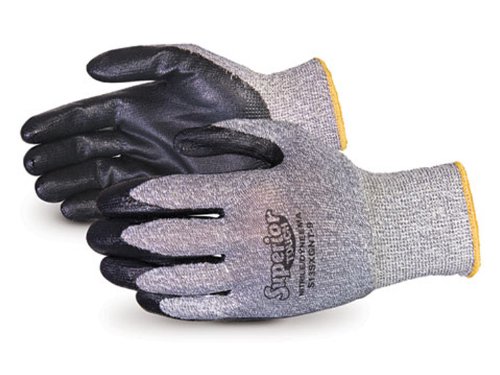 Superior S13SXGNT Superior Touch Dyneema Speckled String Knit Glove with Nitrile Coated Palm, Work, Cut Resistant, 13 Gauge Thickness, Size 9, Black/Gray (Pack of 1 Pair)