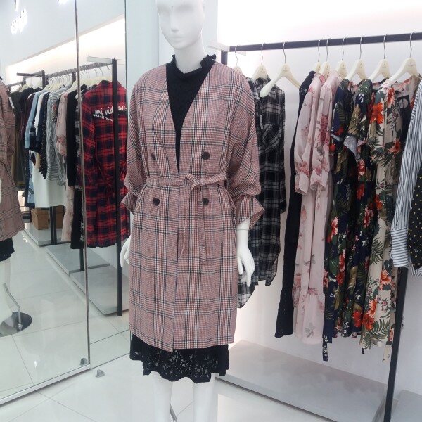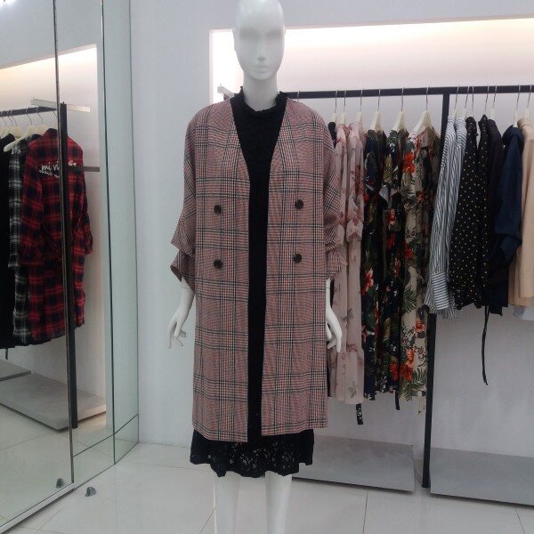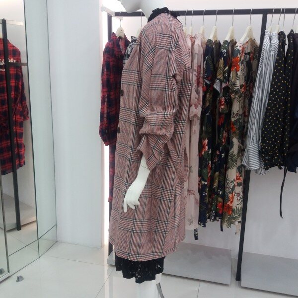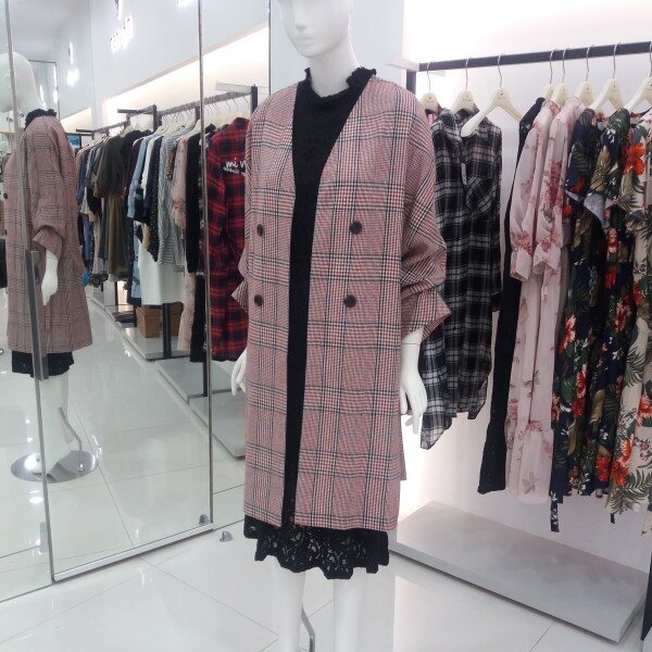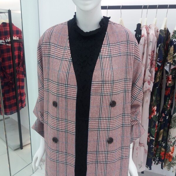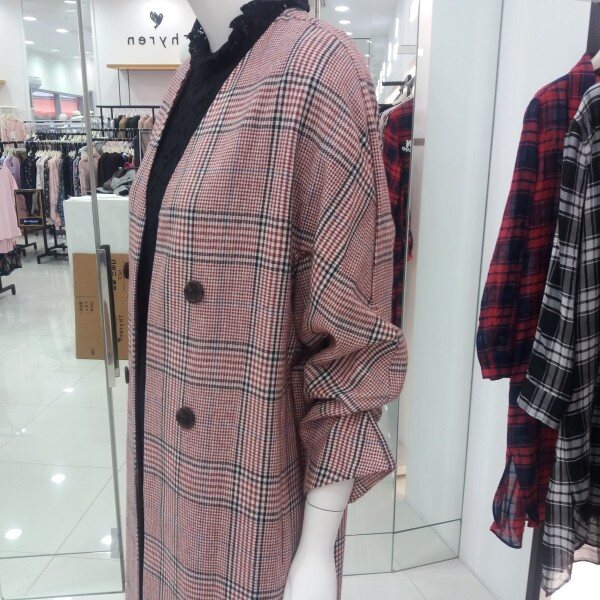 NICE CLAUP, 노카라 체크 롱 자켓입니다 심플하게 핏되며 소매셔링 포인트를준 편하게 착용하기좋은 자켓입니다