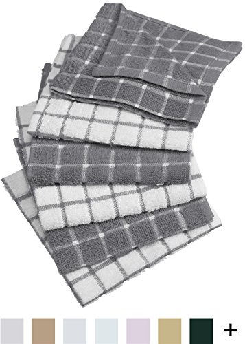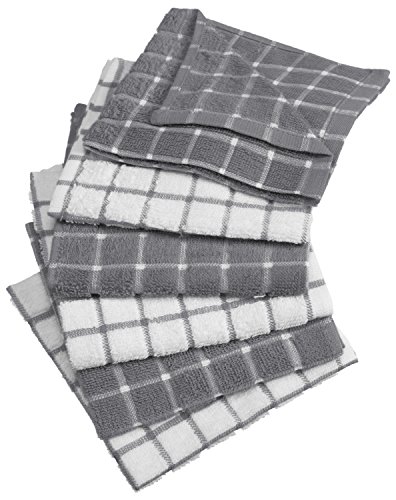 DII Cotton Terry Windowpane Dish Cloths, 12 x 12" Set of 6, Machine Washable and Ultra Absorbent Kitchen Bar Towels-Gray