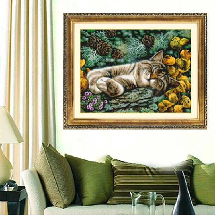 Needlework,DIY DMC Cross stitch,Sets For Embroidery kits,Sleeping Cat Patterns Counted Cross-Stitching,Wall Home Decor