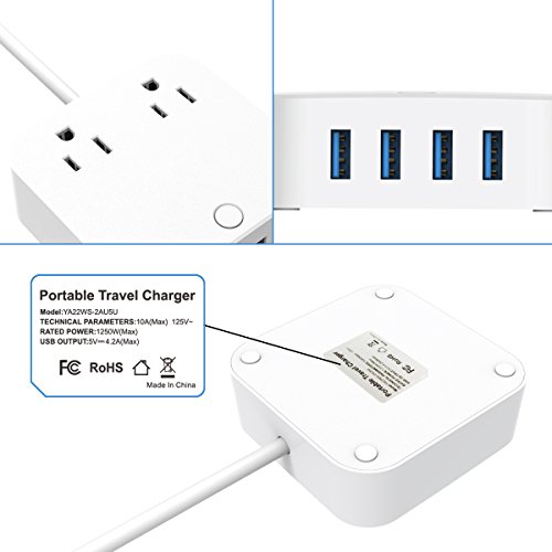 - ✅ 4 USB SUPER CHARGING PORTS: 5V/2.4A*4 smart USB charging ports with a MAX power output of 20W, will detect your devices to deliver the ideal charging speed up to 2.4A per port