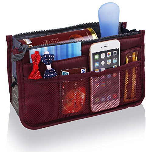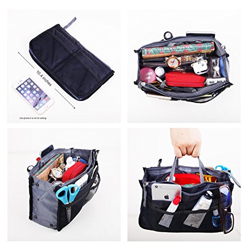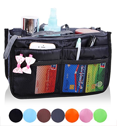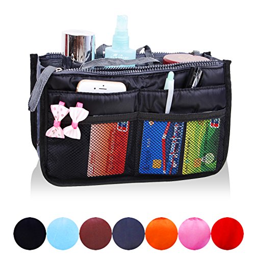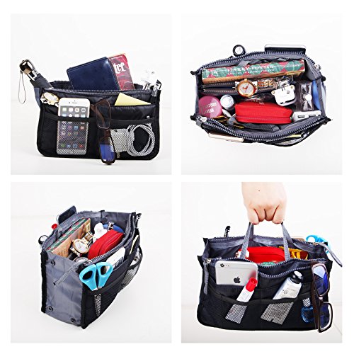 | JET-BONG(TM)XB001 Multi-Pocket Handbag Organizer Liner Pouch, Medium Size with Handles in 5 Colors |