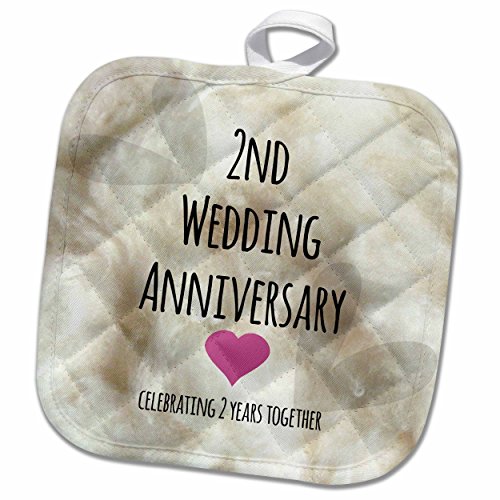 3D Rose 2Nd Wedding Gift-Cotton Celebrating 2 Years Together-Second Anniversaries Two Yrs Pot Holder, 8 x 8"