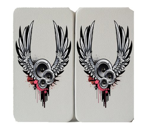 Product DescriptionMusic Winged Speaker Art - White Taiga Hinge Wallet Clutch0