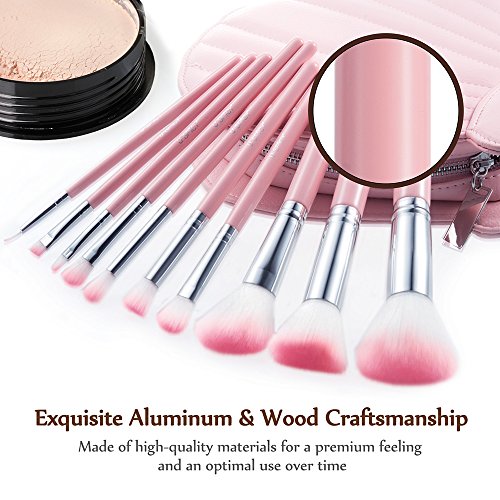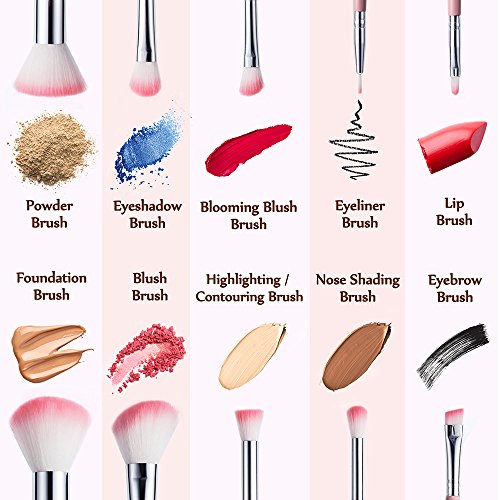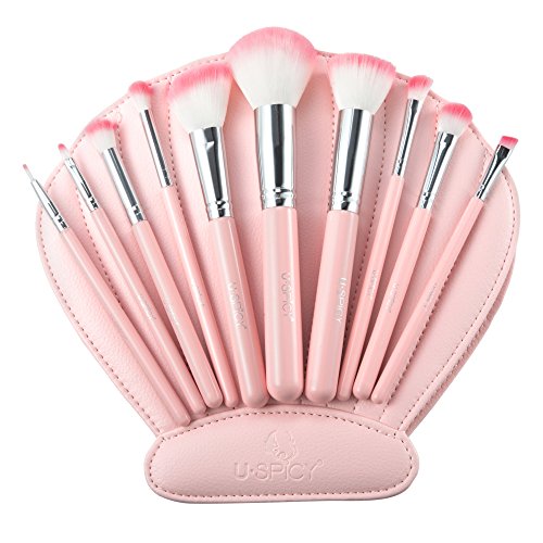 Makeup Brushes, USpicy Professional 10 Pieces Makeup Brush Set with Seashell Shaped PU Leather Case (Soft Synthetic Fiber for Uniform Application of...