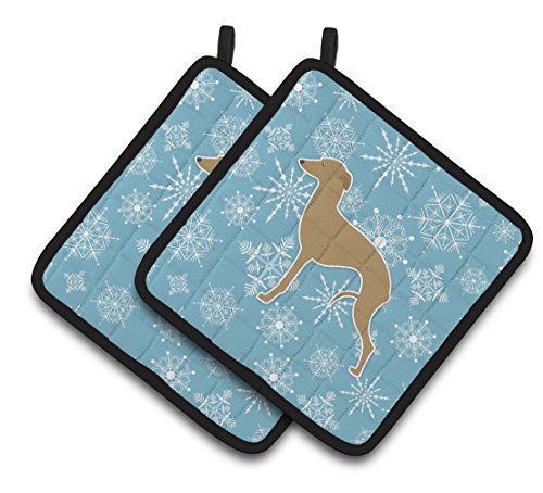 Caroline's Treasures Winter Snowflake Italian Greyhound Pair of Pot Holders BB3514PTHD, 7.5HX7.5W, Multicolor