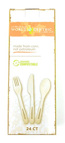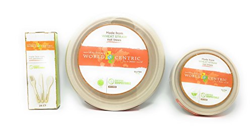 Worldcentric Compostable Flatware Bundle: One Set of 20 Bowls, One Set of 20 Plates, One 24 Count set of Cutlery