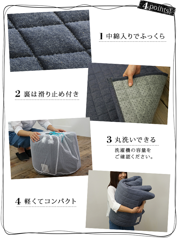 ●コットン 洗えるラグ キルト スミノエ 丸洗い 185 滑り止め付き