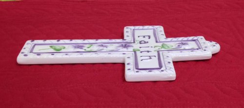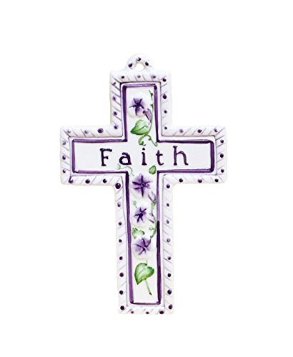 Precious Home Collection, Purple flowers and "Faith" Decoration Cross, 7-1/2"L x 4-3/4"W, 80968 By ACK