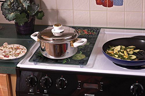 Product Description This Counter Art Instant Counter features a raised working surface with permanently attached silicone-capped feet for stability, allowing for placement over stovetop burners and sink openings to create additional prep space in your kitchen. Made of durable tempered glass with an attractive design, the Instant Counter offers precious additional functional work space while adding a beautiful design element to your kitchen. This versatile piece may also be used as a cooling surface for hot cookware or as a serving tray on the buffet or dinner table. Great for entertaining at home, boats, or RVs. Measures 20-1/2 by 11-3/4 by 1-3/4. 0