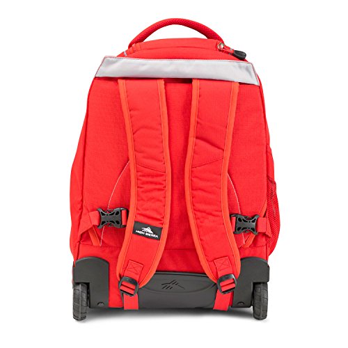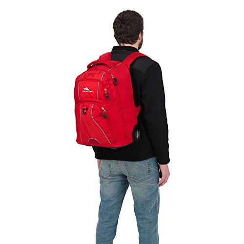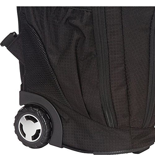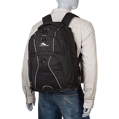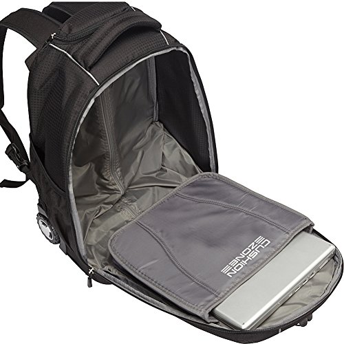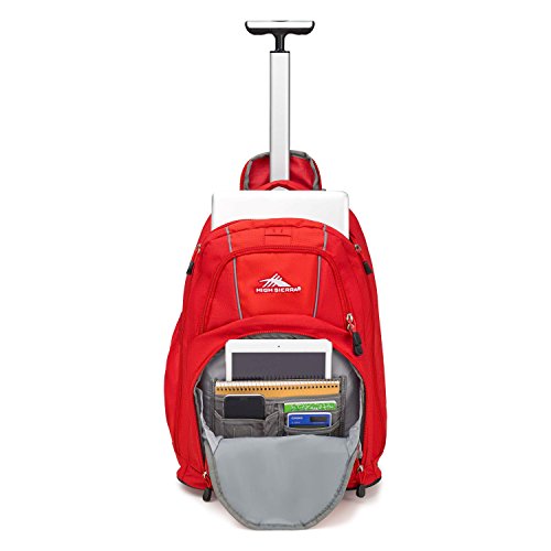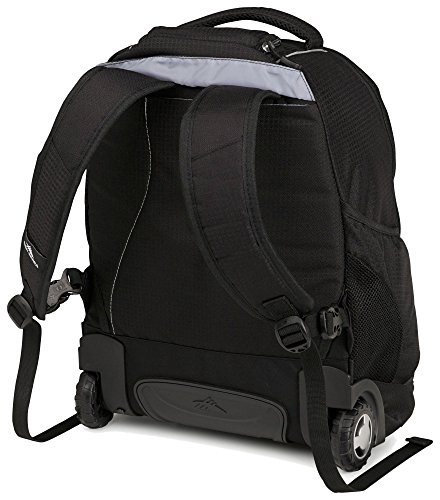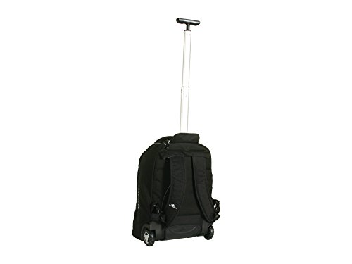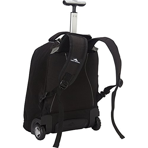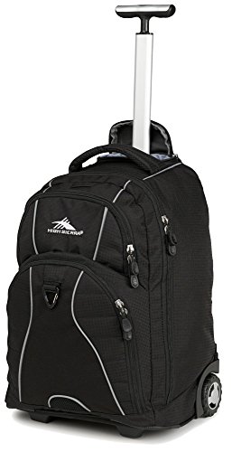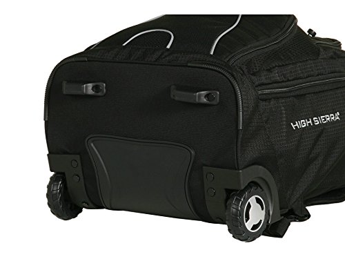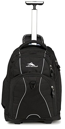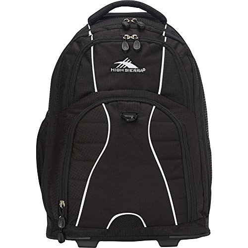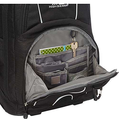 Studio : High Sierra Publisher : High Sierra Product Description Large front-load main compartment with cushion zone padded computer sleeve - holds most 17 (screen size notebook computers (max size: 16 x 11 x 1.75 Large zippered front compartment has deluxe organizer with media pocket, zippered pocket, multiple open pockets and key fob Easy access zippered accessory compartment has a headphone port Large corner-mounted wheels and flush-mounted, single-tube telescoping handle Contoured, adjustable vapel mesh padded shoulder straps tuck away inside the padded back panel 0