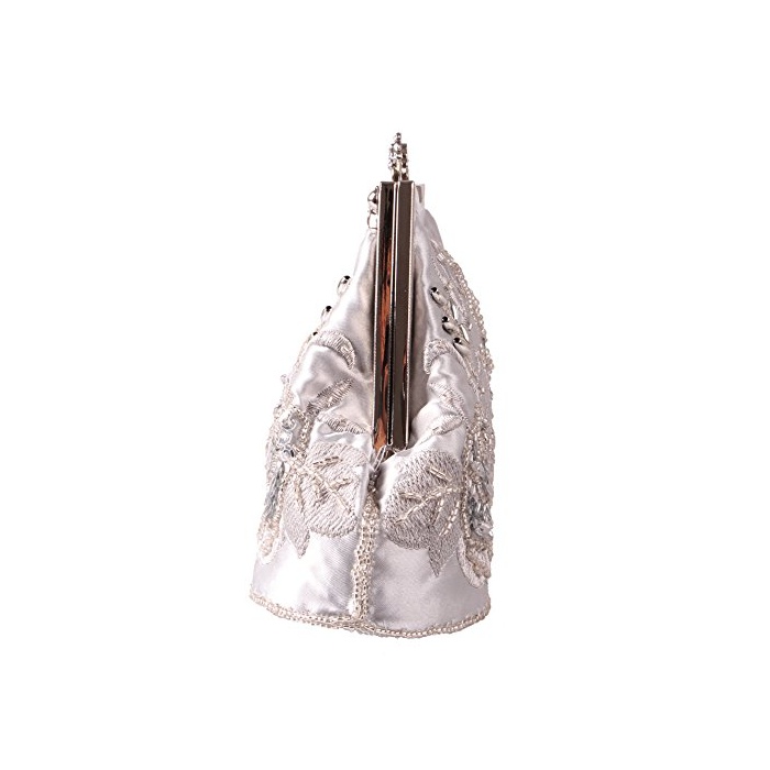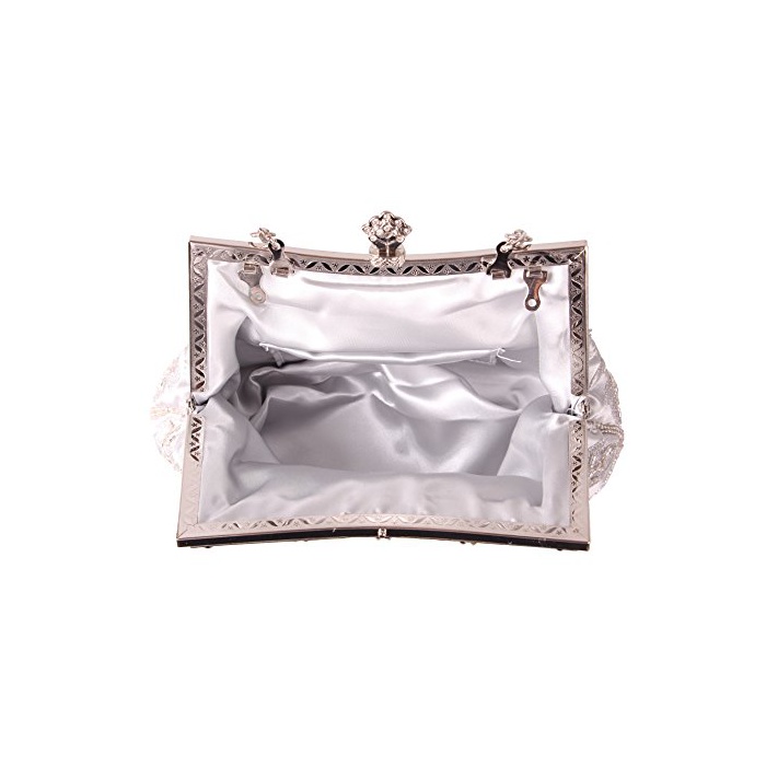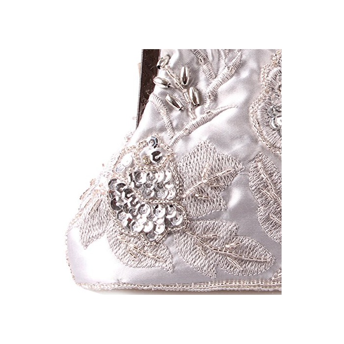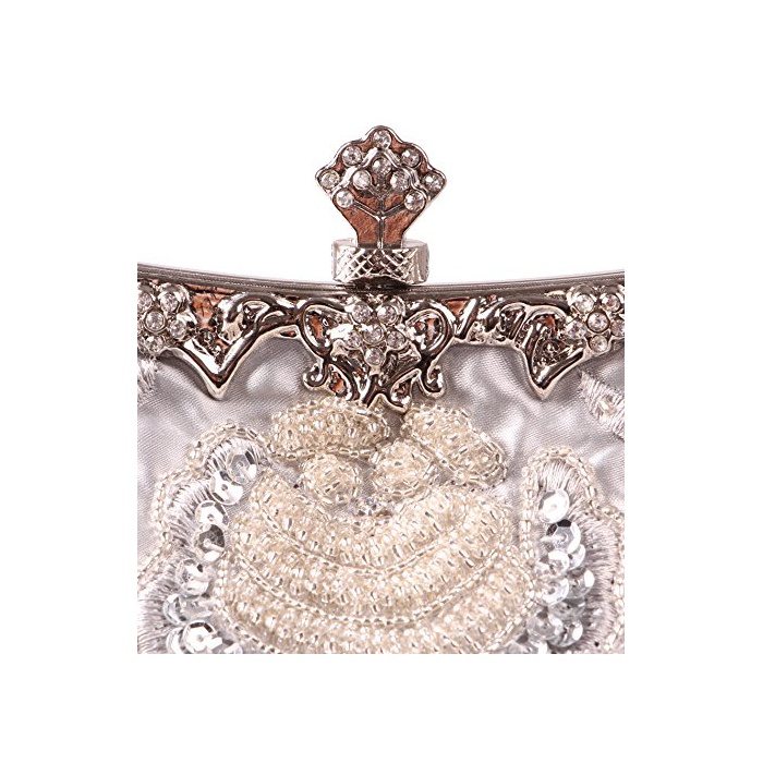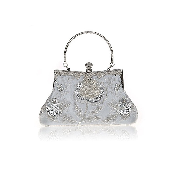 Tom Clovers 레디의 클래식 비즈 백 자수 장미 클러치 백 이브닝 파티 핸드백 실버