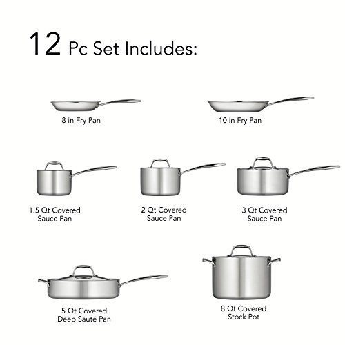 -. Title : Tramontina 80116/249DS Gourmet 18/10 Stainless Steel Induction-Ready Tri-Ply Clad 12-Piece Cookware Set, 24cm, Stainless