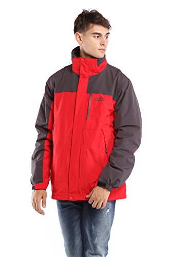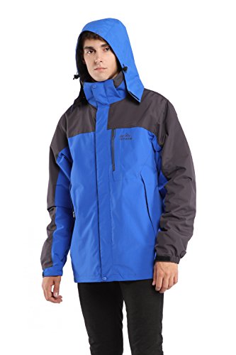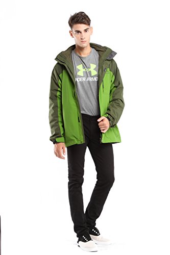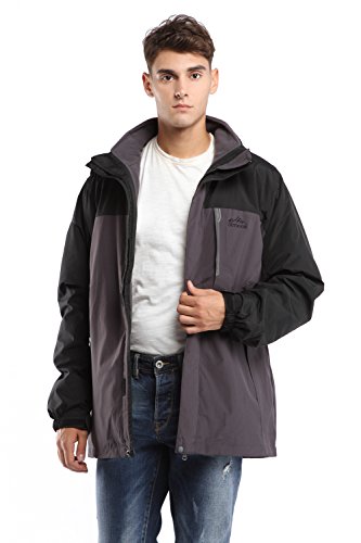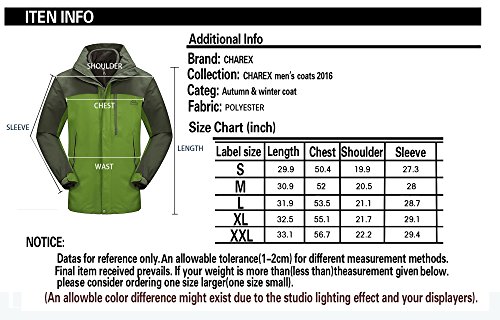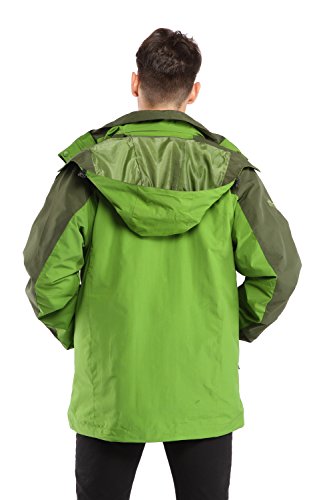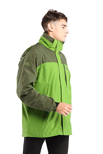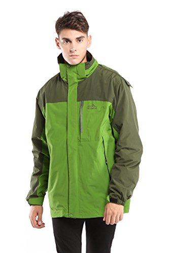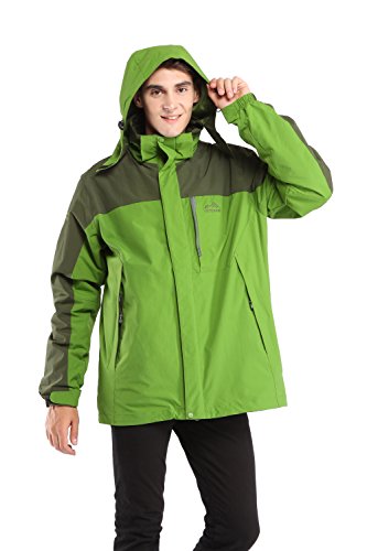 맨즈3?in 1쟈켓고, CHAREX방수 스키쟈켓방풍 마운틴 아웃도어 후드 부착 코트 소프트 쉘with Removable Inner Fleece 컬러: 그린
