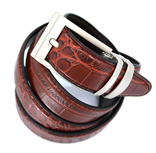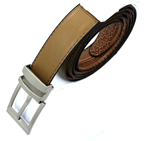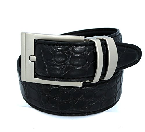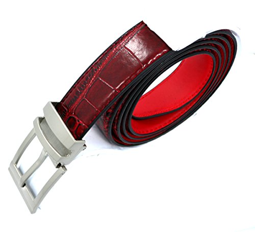 Binding : Apparel Product Description Combining a magnificent 100% handmade genuine bonded leather reversible crocodile belt along with a removable silver buckle, this belt is a simple and stylish way to finish off your formal look. One side is a crocodile design and on the flip side is solid. We offer two different widths, one is 35mm which is equal to 1.5 inches and another is 30mm which equals to 1.18 inches. This belt is priced at a very affordable price while providing genuine quality.In addition to its timeless classic look, this belt features five different holes to take it in or to let out for a proper fit to the shape of your waist. The removable silver buckle has a fantastic look which contributes a captivating burst of elegance to the belt, boasting the perfect amount of elegance to everything from a tuxedo, a suit or even a pair of jeans.With the endless possibilities you can choose to wear the pieces together or mix and match the pieces to create your own unique individual style-either way it will make any look all the more amazing. This chic dress belt set be worn for any occasion, ranging from weddings and proms, to date nights or even a midnight stroll through the town.We provide up to ten different colors to choose from when you're feeling the look of black or subdued grays, browns, blue and even burgundy. We promise you're sure to find a perfect outfit to match this outstanding genuine leather belt. It is also a perfect as formal wear for the groom and groomsman in a wedding party. We promise you a satisfaction of the highest degree! 0