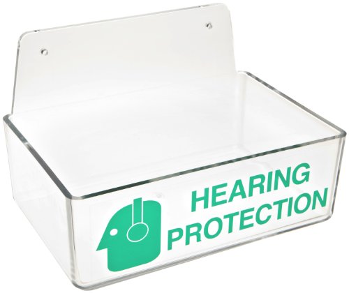 Brady 2019 3" Height, 9" Width, 6" Depth With 6" Height, Backplate, Acrylic, Green On Clear Color Compact Ear Plug Dispenser Without Cover, Legend "Hearing Protection (With Picto)"
