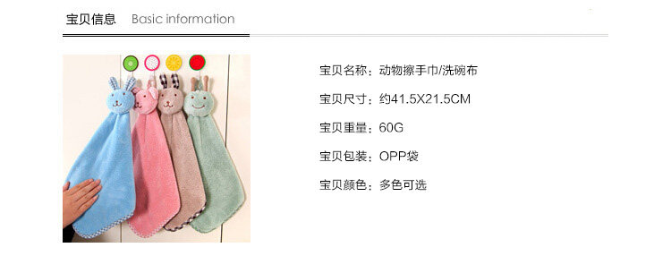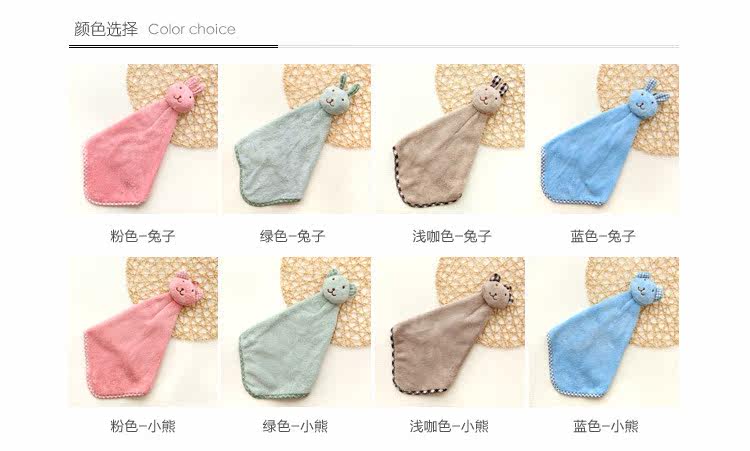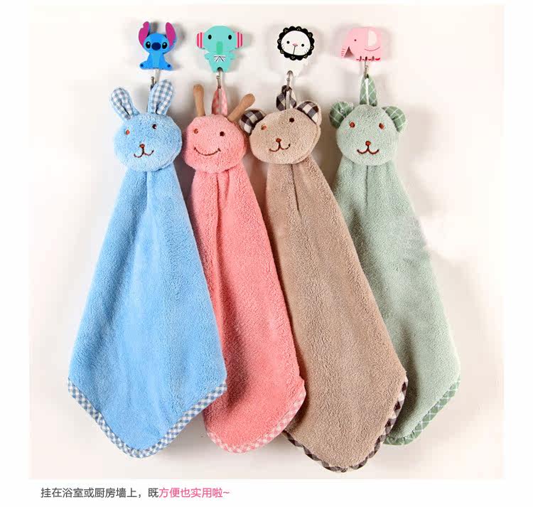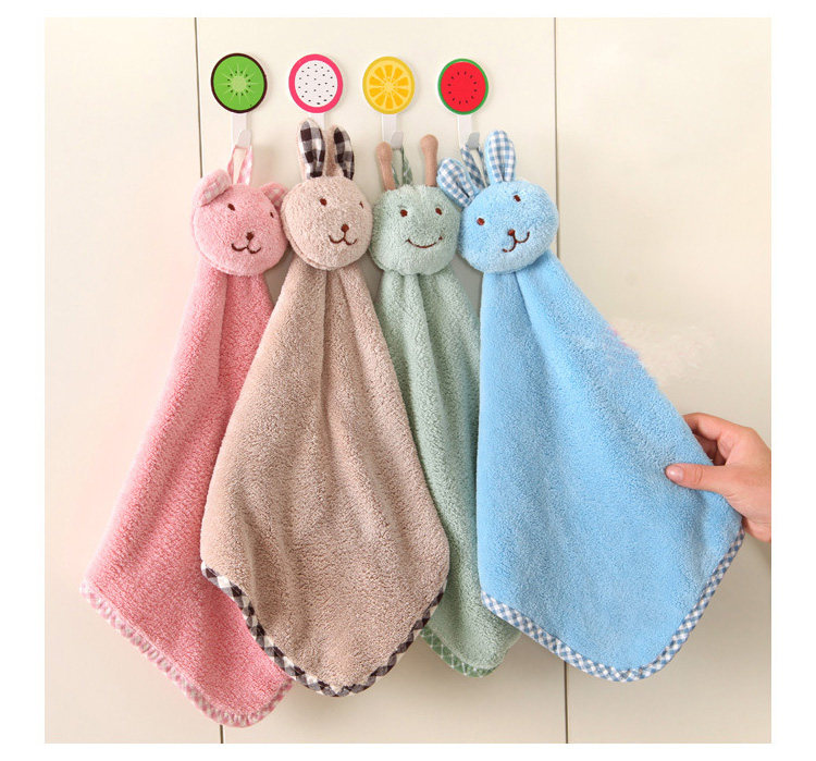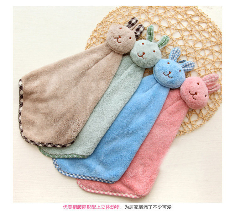 小兔子珊瑚绒擦手可挂式可爱卡通手帕吸水不掉毛擦手布毛巾搽手巾