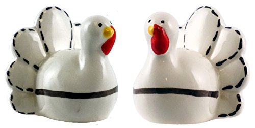 - Features a pair of white turkeys with stitched details