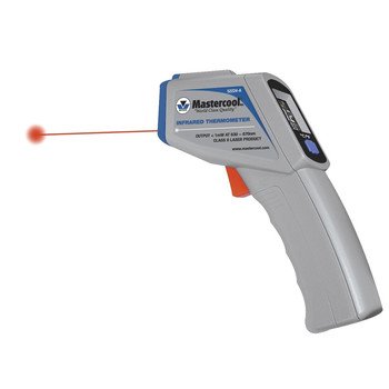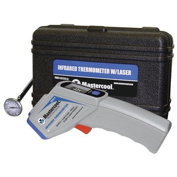 Studio : Mastercool Publisher : Mastercool Binding : Misc. Product Description The Mastercool Infrared Thermometer remotely measures temperatures ranging from -58 to 932 degrees Fahrenheit. This unit features an easy-to-read enhanced back-lid 1" LCD display, scan mode, maximum temperature display, and a toggle button for Fahrenheit and Celsius readouts. This package also includes two AAA batteries, an instruction manual, and a rugged plastic carrying case. 0