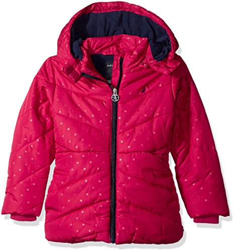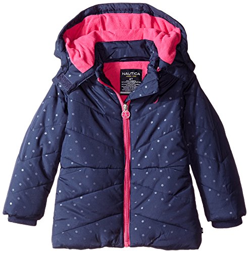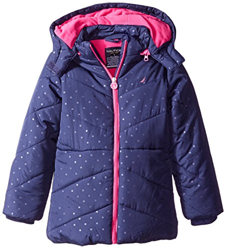 Nautica dot printed jacket with polar fleece lining and removable hood.