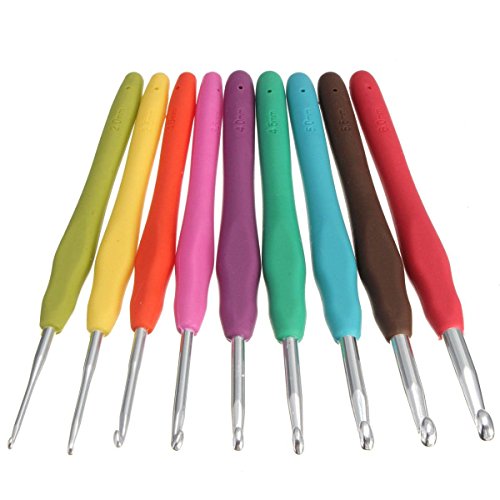 KINGSO 9pcs Multicolor Aluminum Crochet Hook Needles Knitting Craft Set