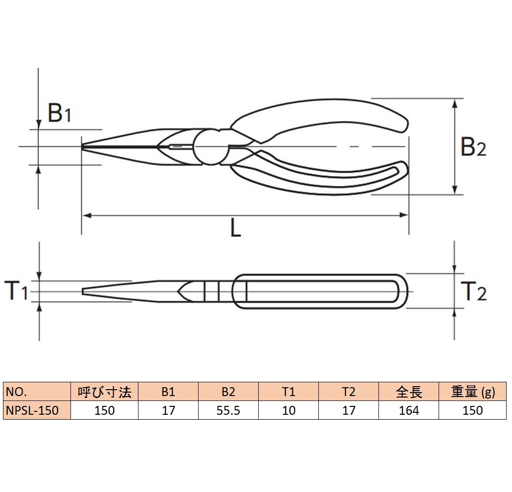 Specification Nominal size: 150 B 1: 17 B 2: 55.5 T 1: 10 T 2: 17 L: 164 Weight: 150 g ※ This product is not plated.