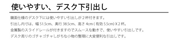■デスク天板下には、引き出しが2杯付き小物の収納などに便利です。