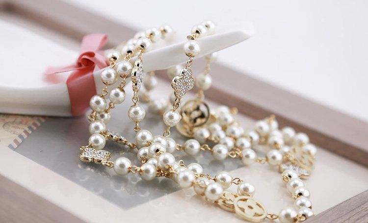 四叶草 是双面都贴水钻,完全没有愉工减料,实物很高档,高档的人造珍珠
