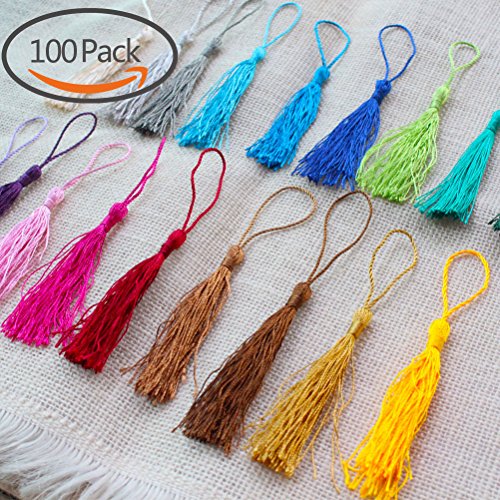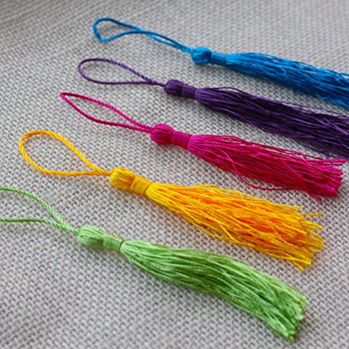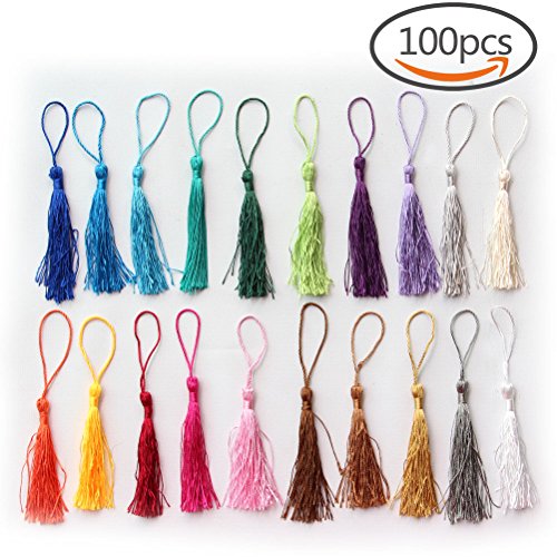 Creatrill 100 Pcs 13cm/5 Inch Silky Handmade Soft Craft Mini Tassels with Loops for Jewelry Making, DIY Projects, Bookmarks, 20 Colors, 5 Pcs of Each