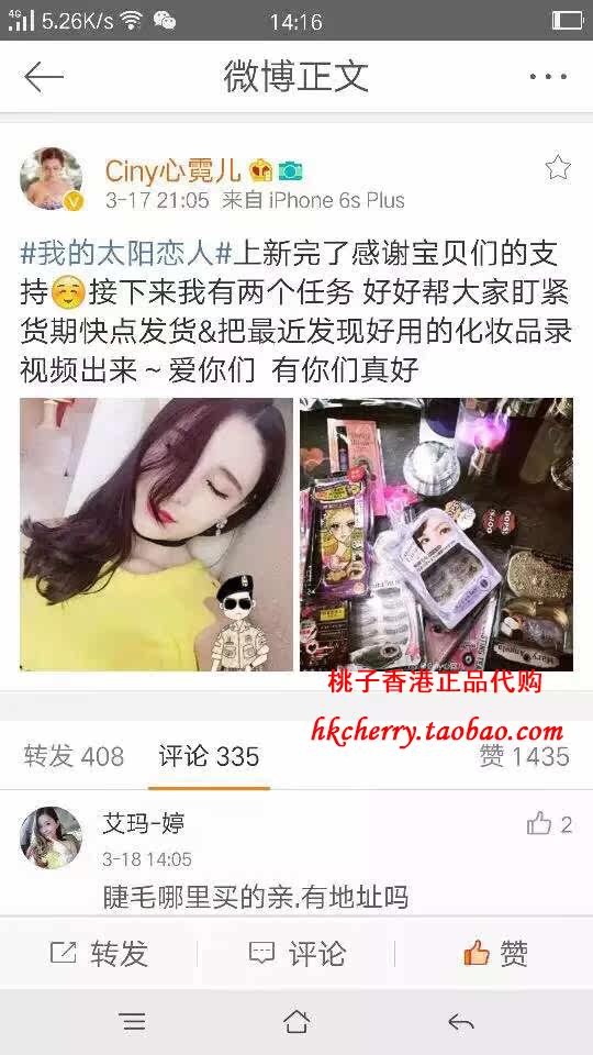 用过他家胶水的朋友都知道非常好用,很粘,还防过敏,现在推出这款假睫毛千万别错过哦~~