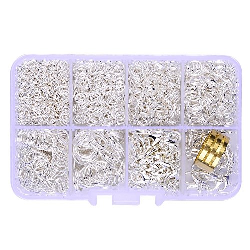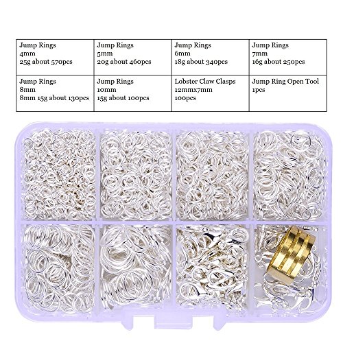 Supla 19 Gauge Thick Open Jump Rings 4mm to 10mm and 100 Pcs Lobster Claw Clasps 7x12mm for jewelry making(silver)