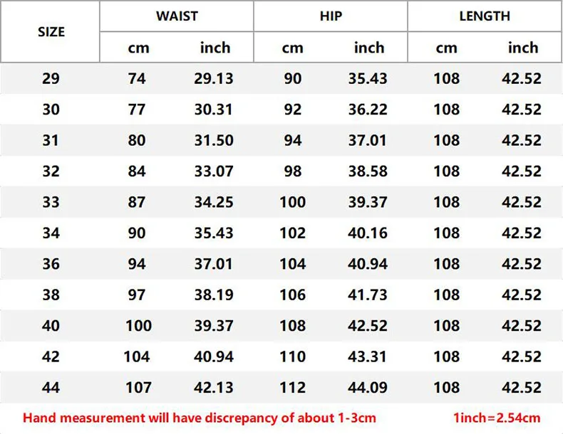Size:29,30,31,32,33,34,36,38,40,42,44