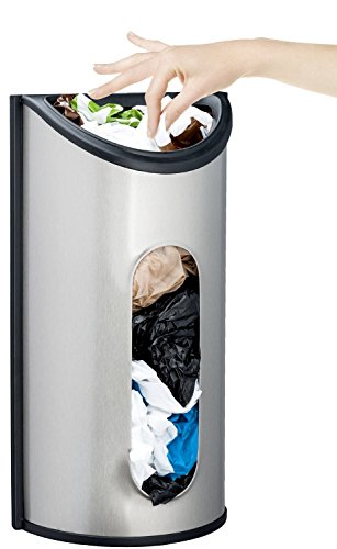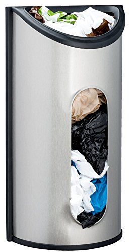 -. Title : Estilo Wall Mount Bag Saver, Holder, and Dispenser, High Quality Brushed Stainless Steel Storage Solution with an Extra Wide Opening for Easy Access to Your Bags