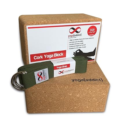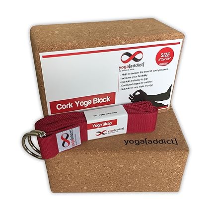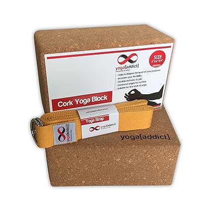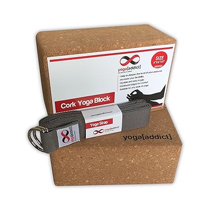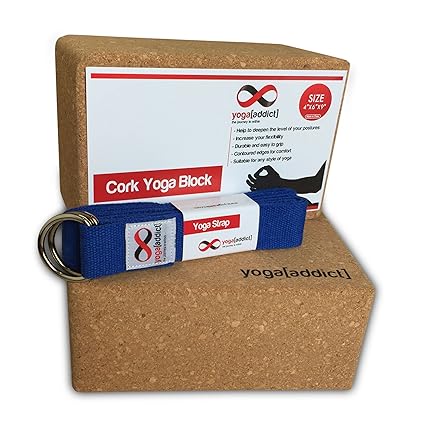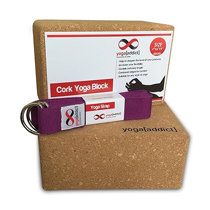 [Product Information]- Includes 2 Cork Yoga Blocks 4" x 6" x 9" and 1 Cotton Yoga Strap (Purple Colour) 8' Long