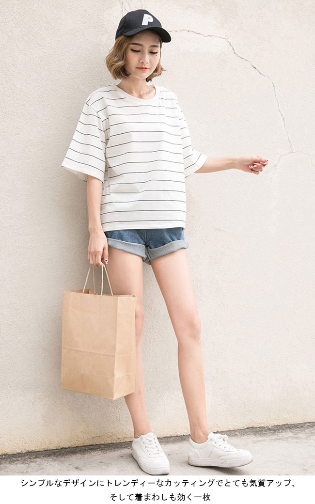 | 商品名 | レディース Tシャツ 五分丈袖 体型カバー ボーダー柄 半袖Tシャツ マリンセーラー 女性用 カットソー ゆったり 夏物 スクール風 カジュアル |