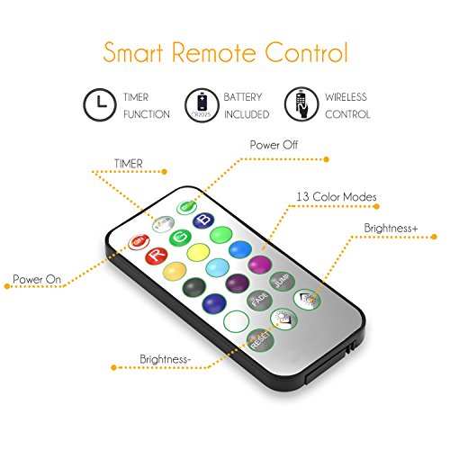 - WIRELESS REMOTE CONTROL: the remote control distance is 16ft. you can control the using time. meanwhile, you could choose different color you like conveniently.