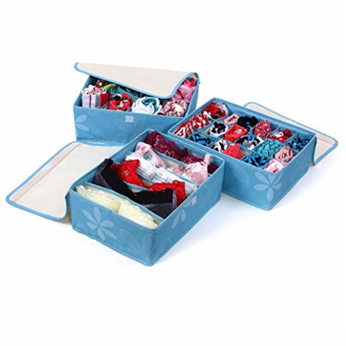 -. Title : Micy Drawer Dividers Closet Organizers Bra Underwear Storage Boxes 3 Set- Blue
