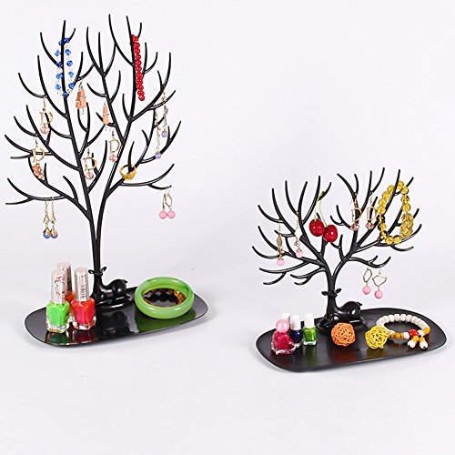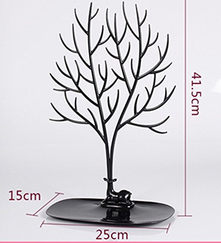 Jewellery Display/Stand/Holder-- Sika Deer Tree Jewellery Holder Jewellery Organiser for Rings Necklace Birthday Gifts Xmas Jewellery Stand Rack Storage (L, Black)
