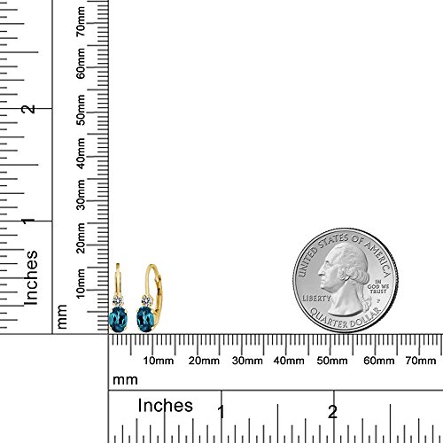 -. Title : 1.07 Ct Oval London Blue Topaz White Diamond 14K Yellow Gold Earrings
