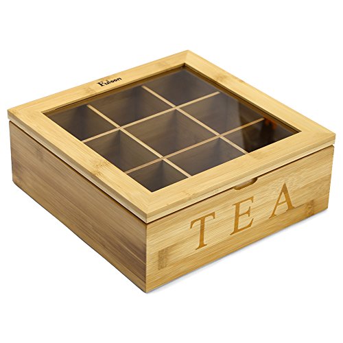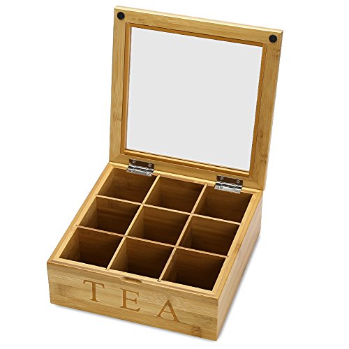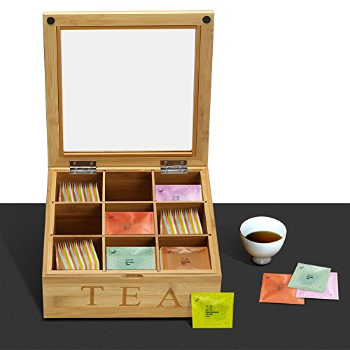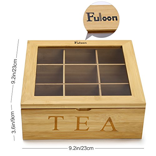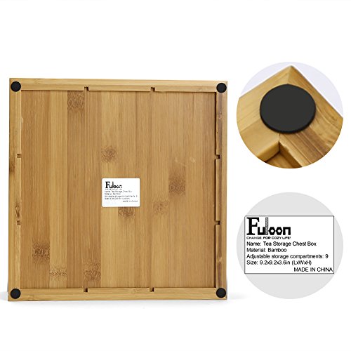 (Fuloon)/Kitchen Dining/Coffee, Tea Espresso/DIRECT FROM USA/Fuloon Bamboo Tea Storage Chest Box Organizer with 9 Adjustable Compartments (9.2x9.2x3.6in)