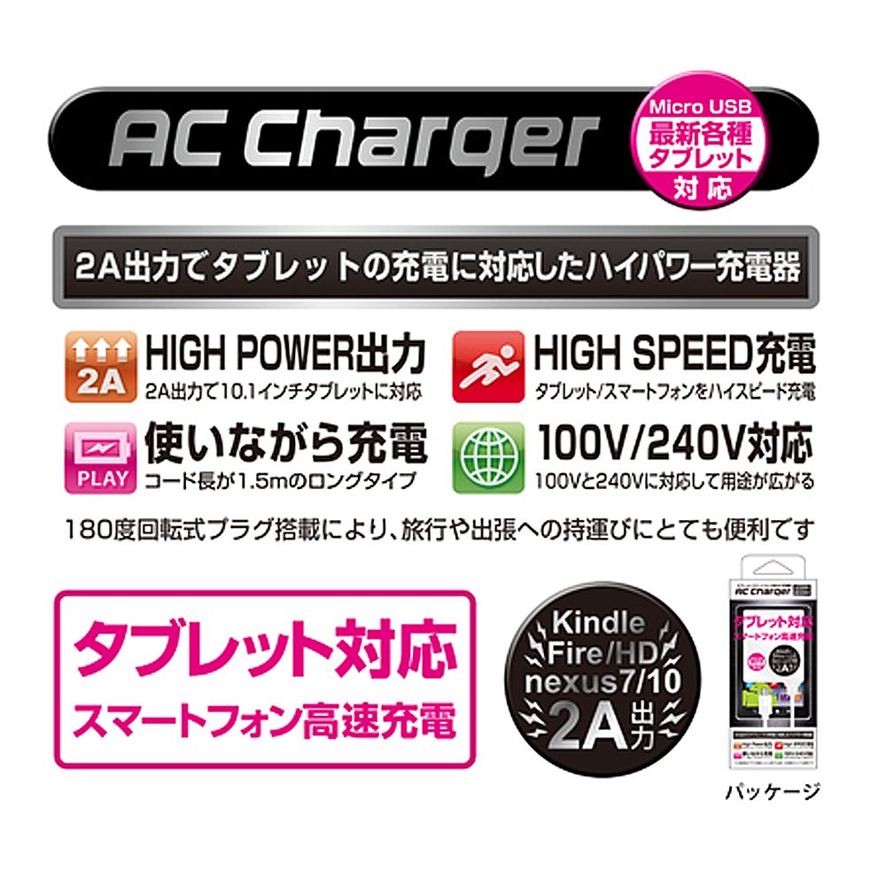 Quality Trust Japan [high-power !!] tablet corresponding household outlet corresponding 2A high power AC Charger [Sumaho rapidly!] QT-020WH